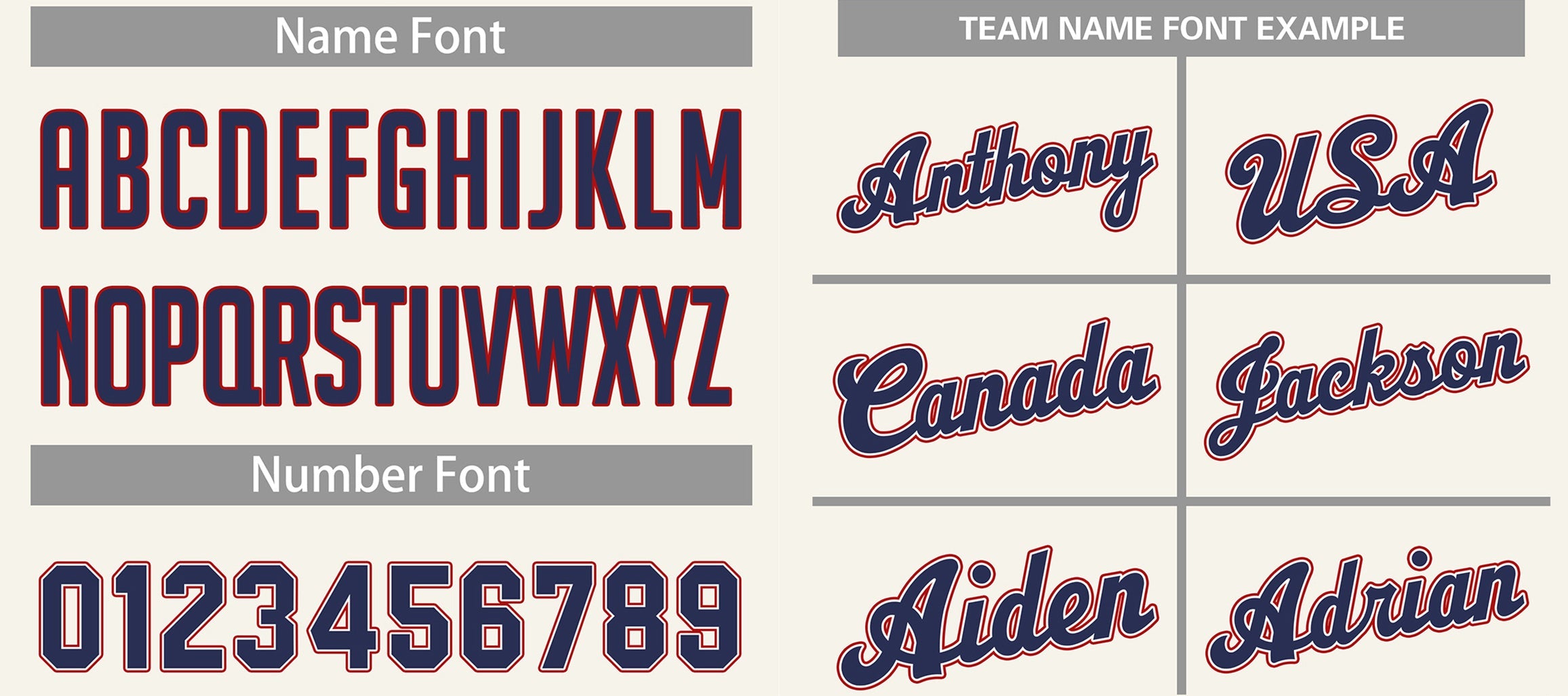 2. Printed team or player name and numbers