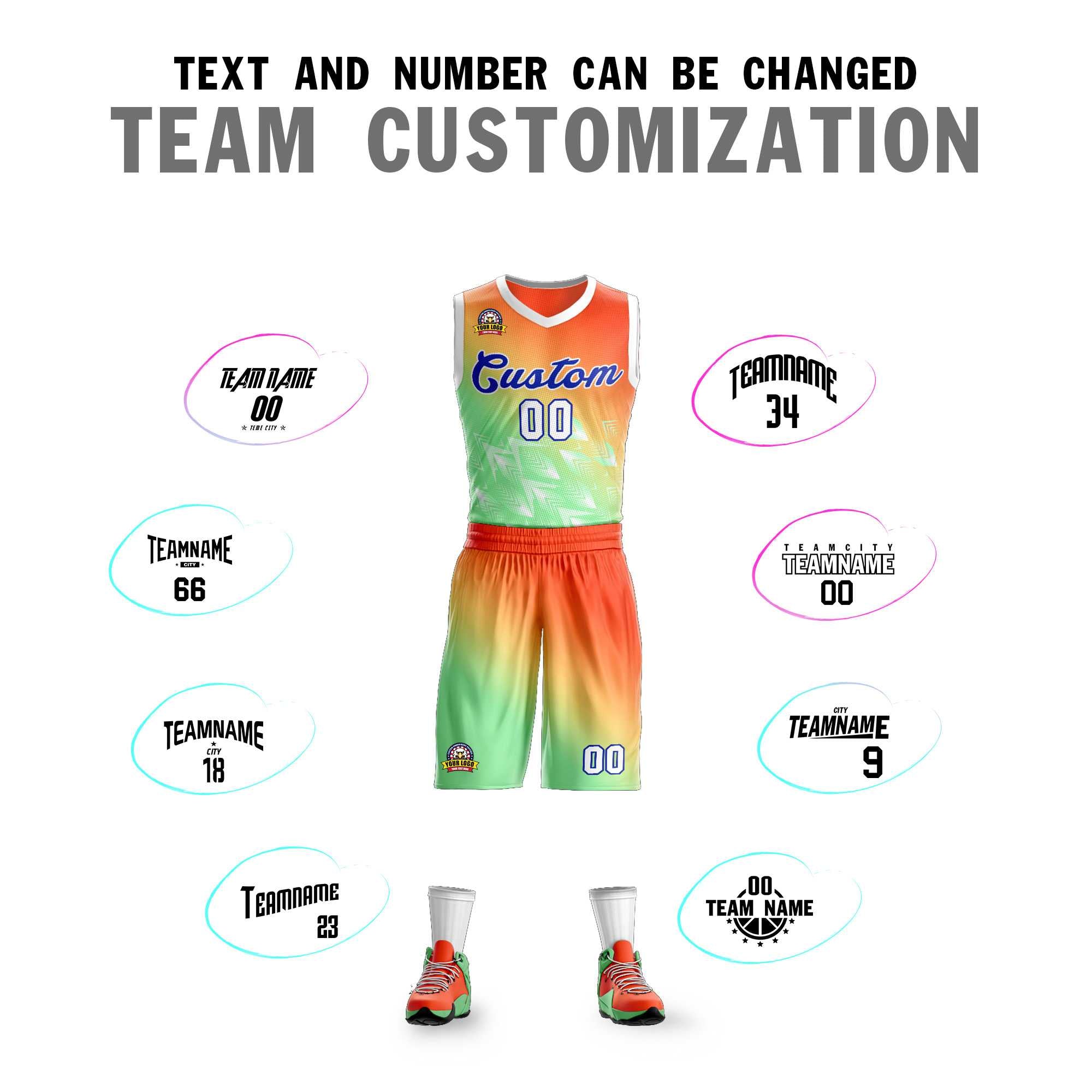 Custom Orange Green-Royal Gradient Fashion Sets Slash Basketball Jersey