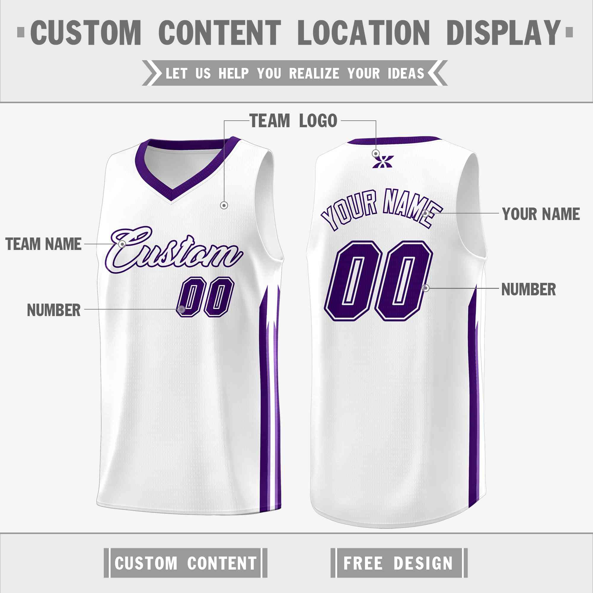 Custom White Purple-Classic Tops Mesh Sport Basketball Jersey