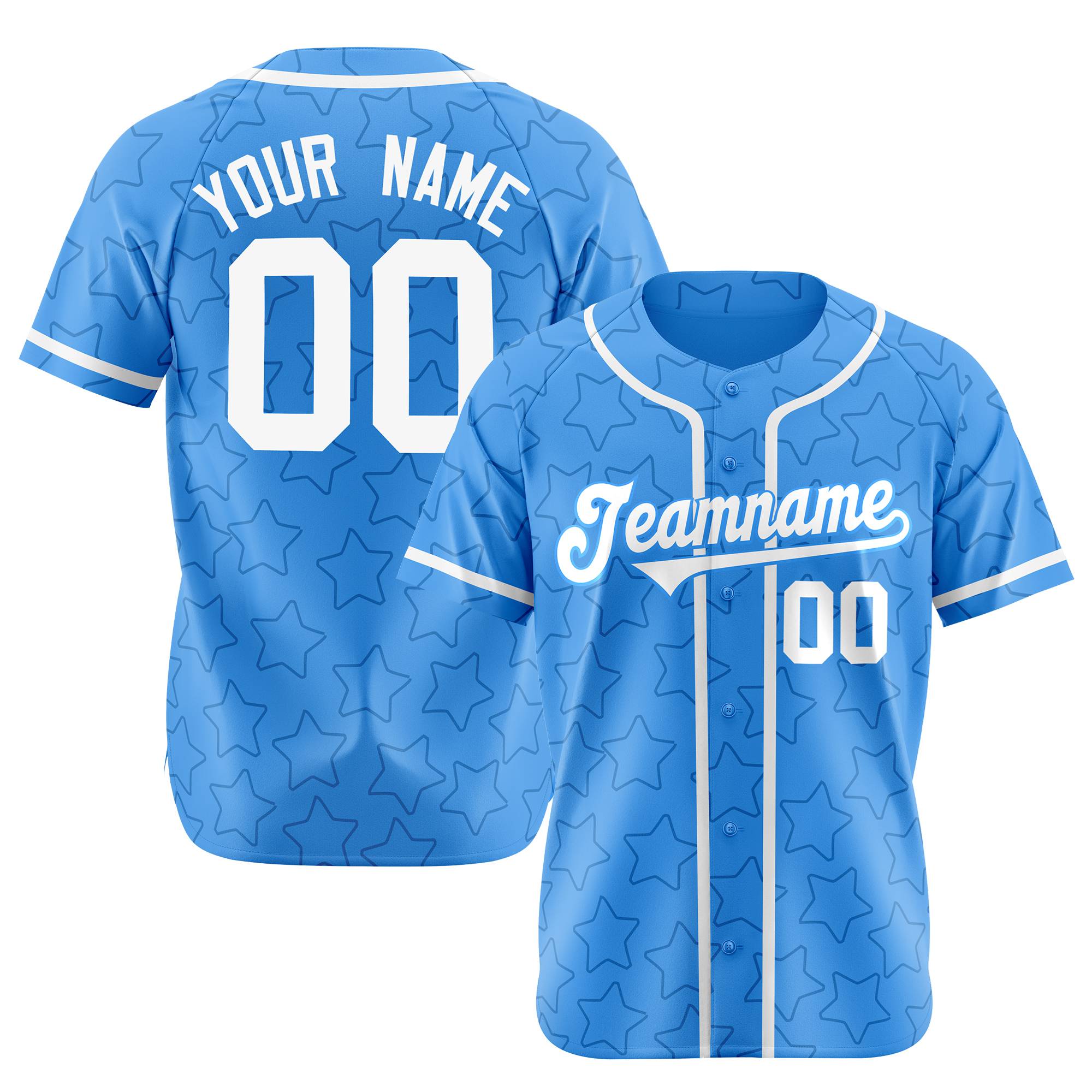 Custom Star Blue White Baseball Jersey Button Down Shirt Personalized for Adults/Youth
